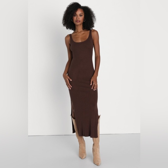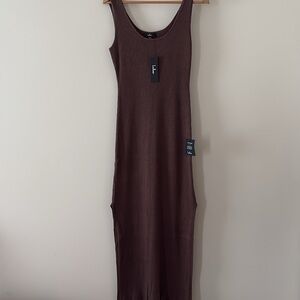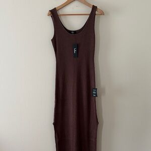 New Lulus Layer Lover Brown Ribbed Knit Tank Dress Sleeveless Side Slit Size XXL