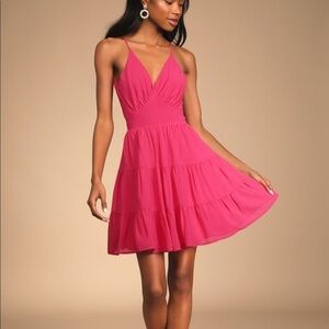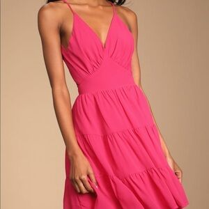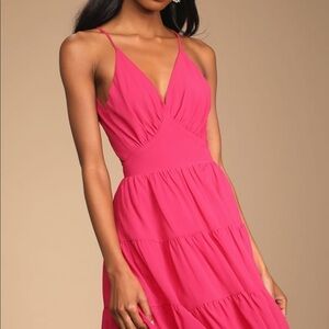 New Lulus Magenta Tie-Back Tiered Spaghetti Straps Midi Dress Size Medium