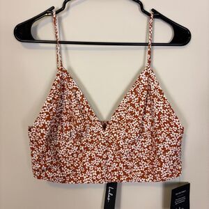 Brand new with tags Lulu's Orange with White Floral Print Triangle Cropped Tank Top Size Large