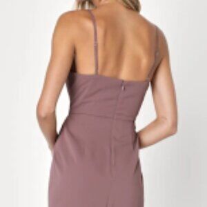 Turn heads at weddings, date nights, or garden parties in this elegant dress. This mauve, pink / purple dress is designed with a flattering princess-seamed bodice, adjustable spaghetti straps, and a faux wrap skirt that creates a graceful high-low hemline. This dress is a timeless favorite for special occasions and can easily be accessorized to elevate the look to the next level.