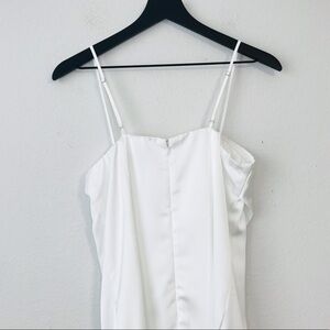 Lulus Romantic Allure White Satin Wedding Bridal Asymmetrical Mini Dress.