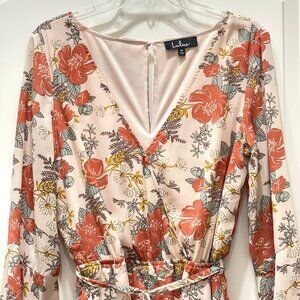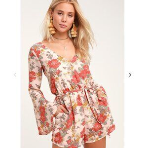 New Lulus Romper Medium Always Thriving Blush Pink Floral Print Bell Sleeve