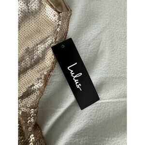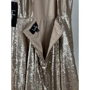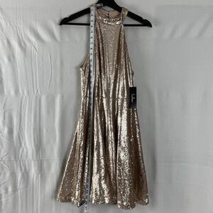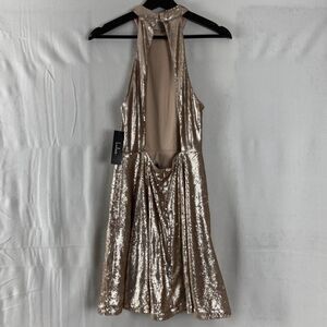 New Lulus Size S Under the Spotlight Champagne Sequin Backless Skater Dress NWT