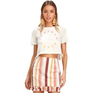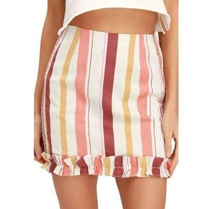 New! Lulus Striped Mini-Skirt With Ruffled Hem Sz S