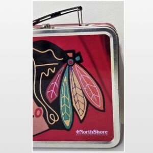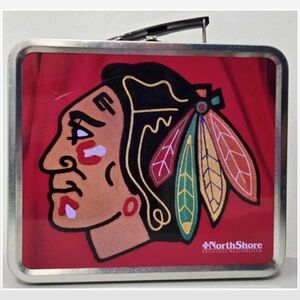 New Lunch Box Unisex Chicago Blackhawks NHL Indian Red Metal Empty NWOT