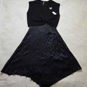 New M By Anthropologie the Gemini cap-sleeve Twofer sweater + dress set in blac