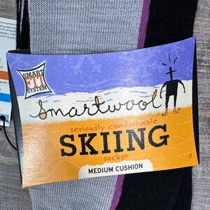 New M Women's SMARTWOOL Ski Targeted Cushion Over The Calf Socks Black Silver