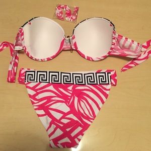 New in package condition. Size medium. Molded cups. Removable gold decor. Removable straps for strapless option.