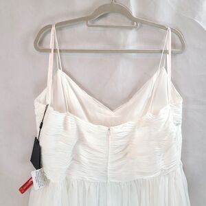 New MAC DUGGAL 2650 (XL) White Chiffon Spaghetti Strap Pleated Bodice Midi Dress