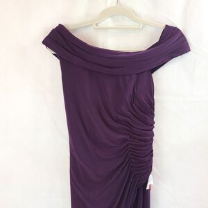 New MAC DUGGAL (4) 26517 Purple (Eggplant) Fold-over Off-the-Shoulder Slit Gown