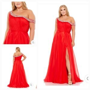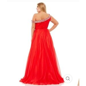 New MAC DUGGAL 67727 Red Beaded Drop Shoulder Pleated Flowy Gown Wn's (14W)-$458