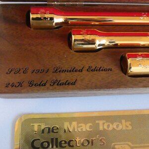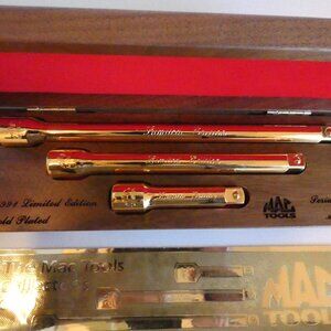 New MAC TOOLS 24K Gold Plated 1991 Limited Edition Extensions #05720 Made in USA. Elevate your tool collection with the prestigious MAC Tools 24K Gold Plated 1991 Limited Edition Extensions #0570. Crafted with impeccable quality, this extension is a testament to the legendary durability and performance that Mac Tools is renowned for. Made in the United States, it showcases the fine artisanship and attention to detail that are synonymous with American-made products. This exclusive piece, an ode to the year 1991, is a collector's gem that has not been modified, preserving its originality and value. The luxurious 24K gold plating adds a touch of opulence to the tool, making it a standout addition to any professional mechanic's arsenal or a sophisticated display for enthusiasts of fine tools.