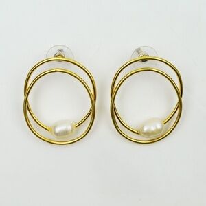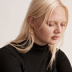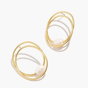 New MADEWELL Double Hoop Pearl Earrings in Vintage Gold $28 NI844