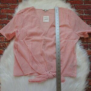 New MADEWELL Novel Tie Front Top Gingham Check Tie Pink White Light Blossom L