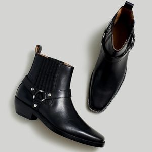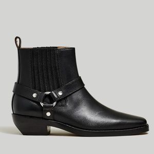Made of smooth leather, these ankle boots features covered elastic gores, a western-inspired harness strap and classic hardware. Plus, our MWL Cloudlift Lite padding makes it feel like you're walking on a...well, you know. When you select your size, "H" equals a half size. 5" shaft height (based on size 7). Leather upper. Leather lining. Man-made sole. Do Well: leather sourced from a tannery that achieved a Gold Rating from the Leather Working Group (LWG), an organization that works to promote sustainable environmental practices in the leather industry. Made in India. Select stores. Item NN024