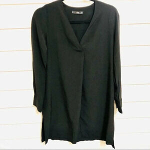 New MANGO MNG Black Made Side-Slit Crossover V-Neck Tunic Top Size XS