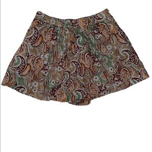 100% Cotton. Short design. Flared design. Printed design. Light fabric. High waist. Two side pockets. Pleated details. Invisible lateral zipper fastening.