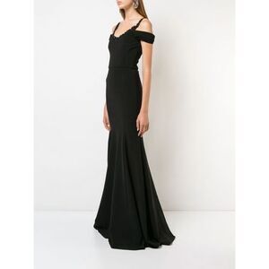 New! MARCHESA NOTTE Women's Beaded Neckline Cold-Shoulder Black Gown Dress 14