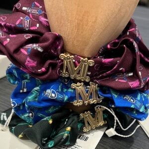 🌷New MAX MARA Accessories Label-cut Logo Printed SILK Hair Elastic”Elasty'' Scrunch.
