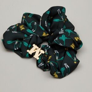 Crafted from sleek silk, the vibrant pattern adds much-needed detail to your everyday hair accessories, and when finished off with a glittering gold ‘M,’ it results in a playful and modern take on the nostalgic silhouette.