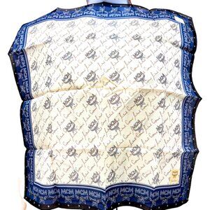 New MCM men/ women Handkerchief/ mini scarf cotton 19.5" Blue beige Log Print(99