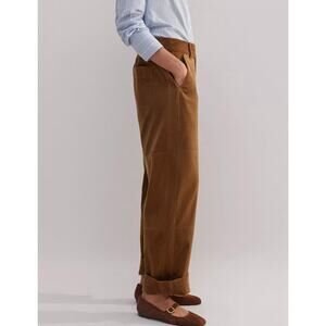 Upgrade your fall wardrobe with these ME+EM caramel corduroy trousers in a relaxed barrel-leg cut. Made from plush wide-wale cotton, these tan pants combine tailored polish with weekend ease. Their high-rise fit, cuffed hems, and architectural seams offer modern structure, while the caramel hue adds quiet luxury appeal. Style with flats or ankle boots for a refined, elevated look. Ideal for capsule wardrobes and minimal-chic fans.