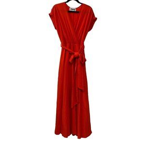 New MEGHAN LA Size M Jasmine Midi Dress wrap front w/tied waist belt Orange
