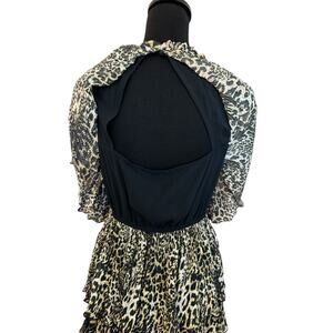 New ~ MELLODAY Nordstrom Multicolor Animal Print Ruffle Mini Dress FALL Small