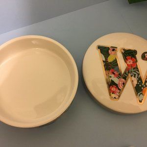 NEW, NEVER USED. Mia Charro Monogrammed Ceramic Trinket/Jewelry Box. The letter "W"