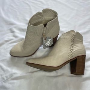 Elevate your style with these chic MIA boot heels. The ivory color and snake theme make them a unique addition to any wardrobe. Crafted with vegan materials, these heels are both fashion-forward and ethical. These MIA boot heels, designed for women with US shoe size 10, feature a trendy snake theme that will make any outfit stand out. These heels are brand new and have never been worn. Perfect for any occasion, these vegan heels are a must-have for any fashion-conscious individual.