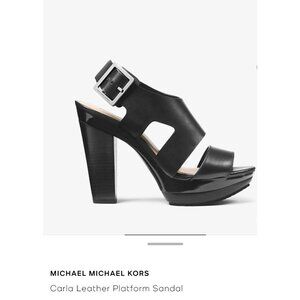 New MICHAEL KORS Carla Platform Sandal Heel Size 5.5 Black Leather Buckle NO Box