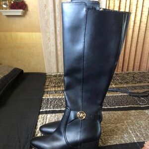 New* MICHAEL KORS Carmen Leather Riding Boots Black Color Size 7 $478