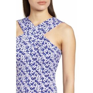New! MICHAEL KORS Floral Print Criss-Cross Neck Dress Size Large Purple White