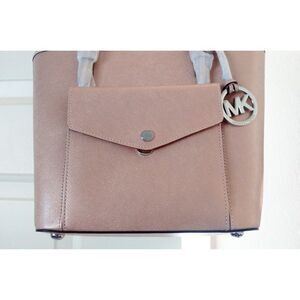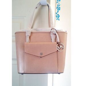 New! MICHAEL KORS Jet Set Pocket Saffiano Leather Tote Bag Handbag Ballet Pink