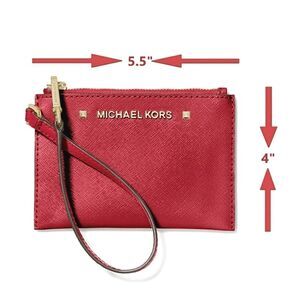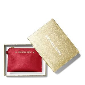New! MICHAEL KORS Karla Red Leather Small Wristlet With Gift Box