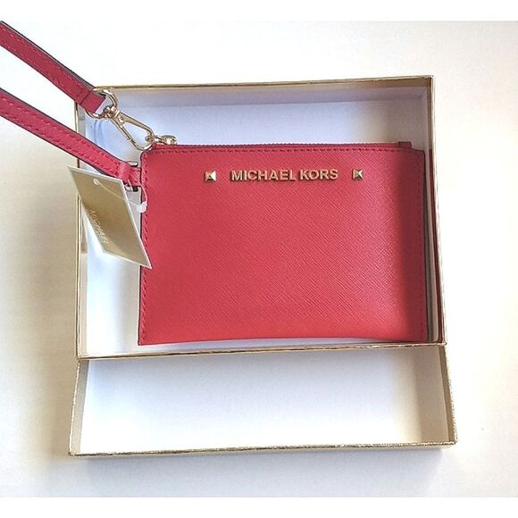 New! MICHAEL KORS Karla Red Leather Small Wristlet With Gift Box