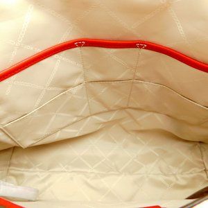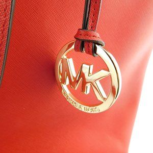 MK Logo Red Leather Satchel Tote Shoulder Strap Large Bag