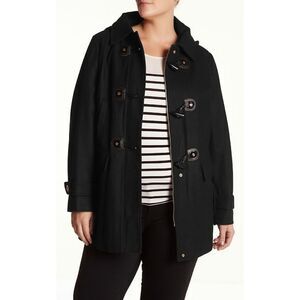 New! MICHAEL KORS Toggle-Front Hooded Black Coat Wool-Blend Plus Size 1X