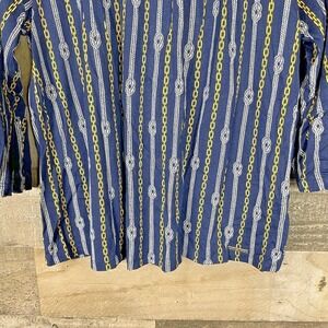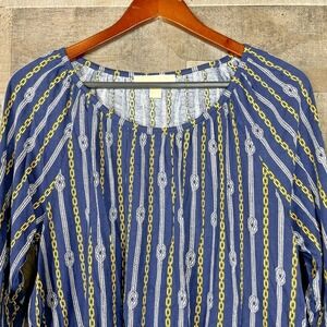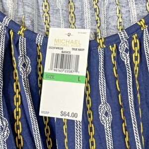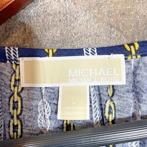 New MICHAEL KORS Women's Basic Top Size L Navy Blue Vertical Chains 3/4 Sleeve