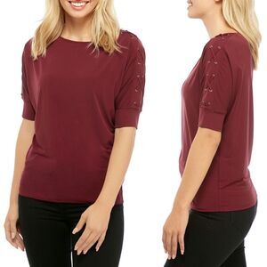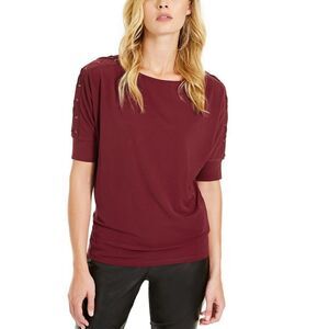 New! MICHAEL KORS Women's Dolman Lace-up Grommet Sleeve Top Blouse Red Size XL
