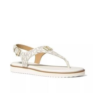 New! MICHAEL KORS Women's MK Logo Jilly T-Strap Sandals Shoes Open-Toe Vanilla 7
