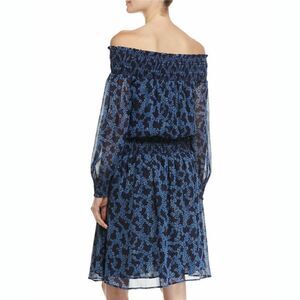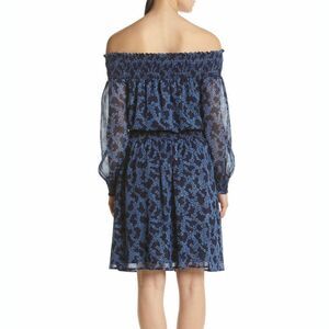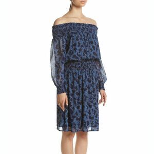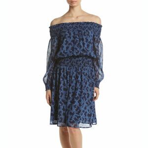 New! MICHAEL KORS Women's Petite Floral Metallic Smocked Off-Shoulder Dress Blue