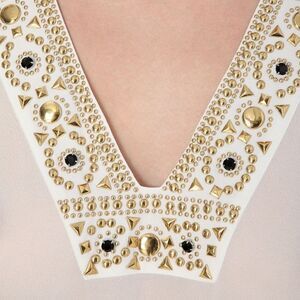 Polyester; embellishments: Aluminum/Brass/Acrylic