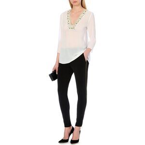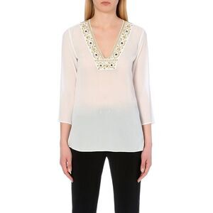 New! MICHAEL KORS Women's Plus Size Embellished Top Blouse V-neck Lightweight