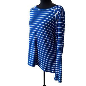 New MICHAEL KORS Women's Royal Blue/White Striped Long Sleeve Top Size XL