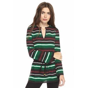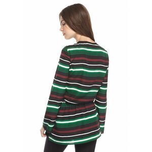 New! MICHAEL KORS Women's Striped Drawstring Top Blouse Tunic XL Long Sleeve