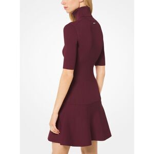 New! MICHAEL KORS Women's Turtleneck Sweater Dress Ribbed Body Flared Hem Merlot