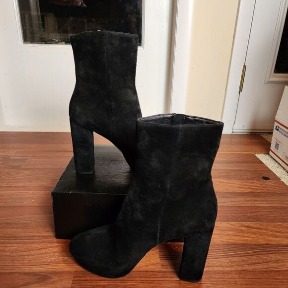 New MICHAEL Michael Kors Frenchie Black Leather Platform Boots 9.5
