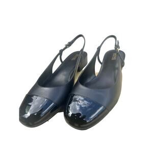 The Perla Flex slingback flats from Michael Kors are crafted of patent leather and highlight a contrasting toe cap.