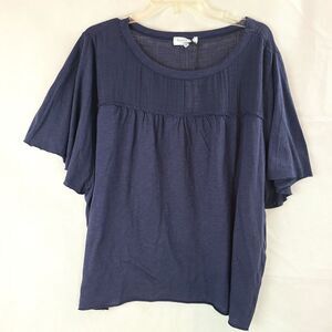 New MICHAEL STARS Women's (2X) Admiral Navy Blue Flutter Sleeve Raw Hem Tee Top